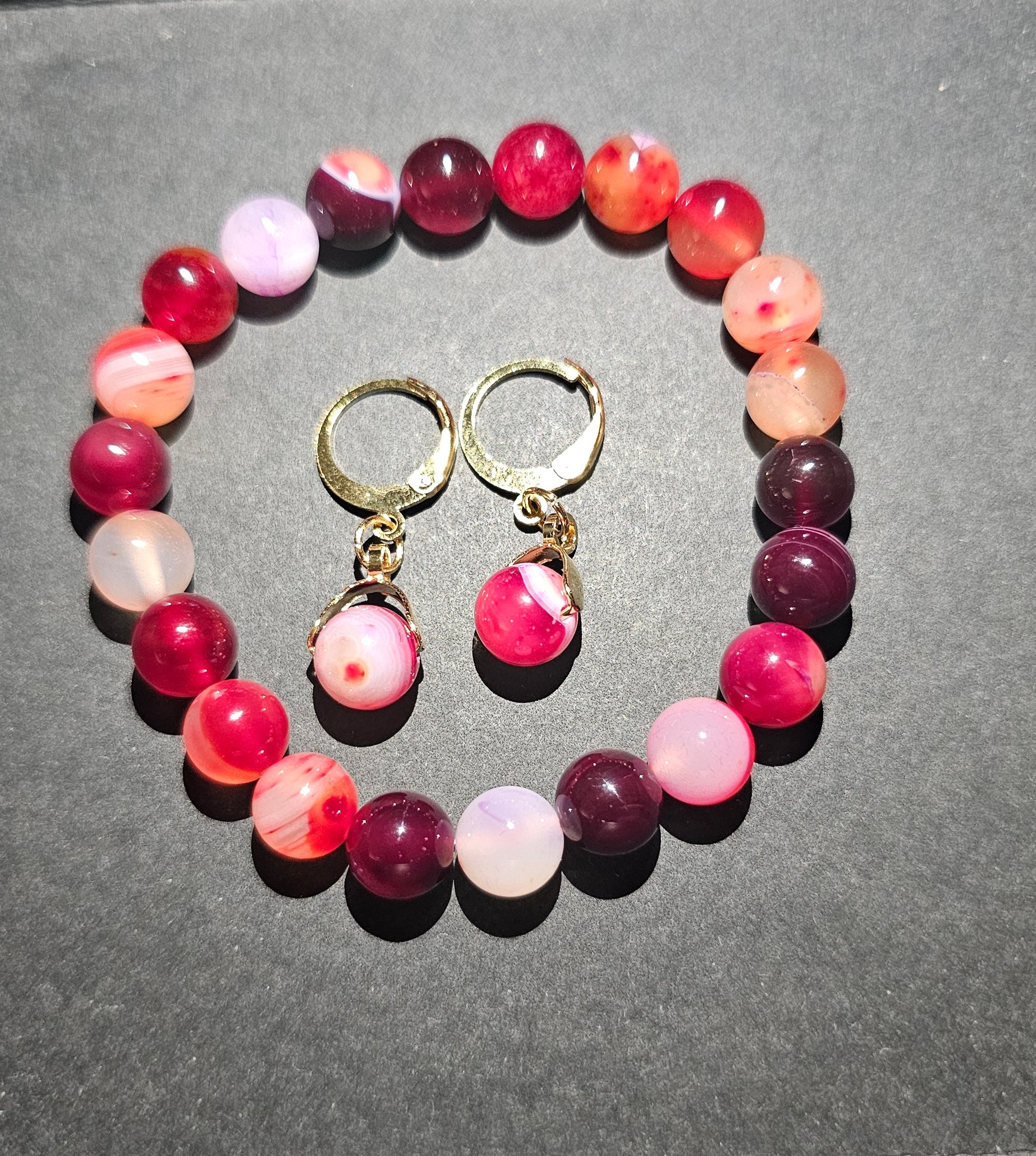 Boucles d'oreilles en acier inoxydable et agate rubanée